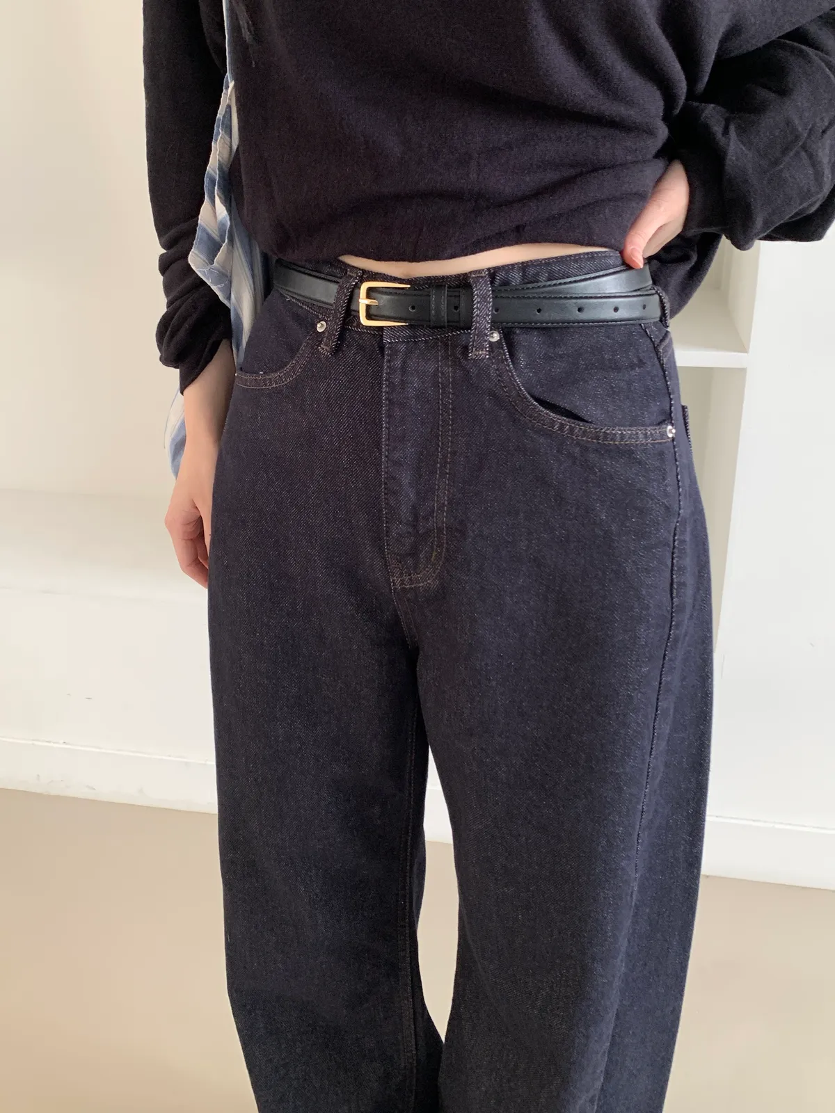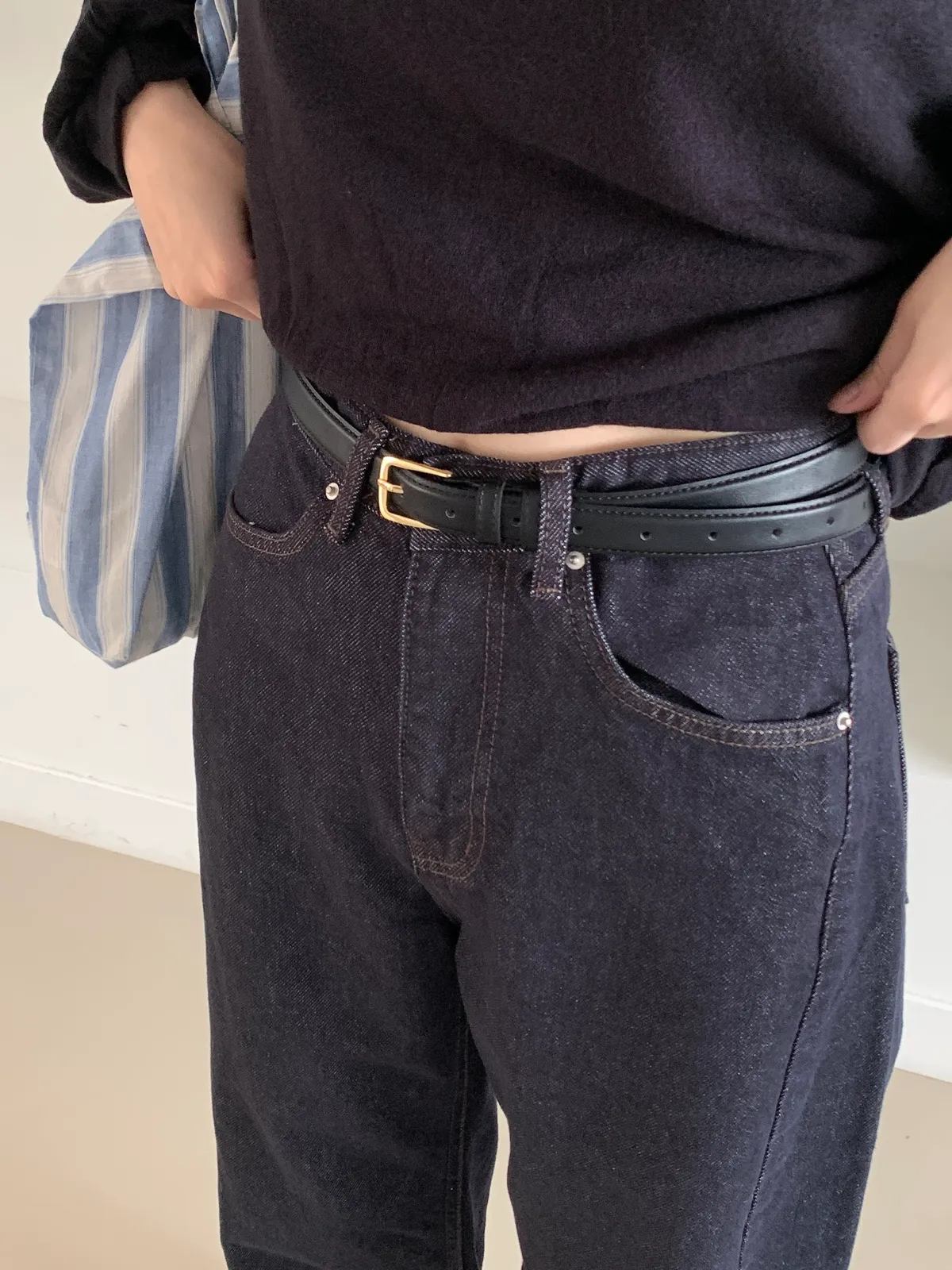 方圓形金扣合成皮皮帶(2colors)